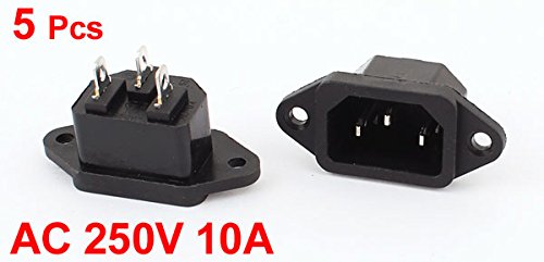 uxcell パワーソケット プラスチック製シルバートーン AC 250V 10A IEC 320 C14 5個入り