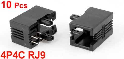 uxcell プッシュインタイプ RJ9 4P4CネットワークPCBジャックソケット ブラック 10個 90°
