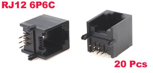 uxcell プッシュイン RJ12 6P6CネットワークPCBジャックソケットコネクタ ブラック 20個 90°