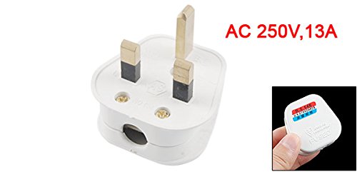 uxcell UK電源プラグ 電源コードコネクタ オス 電気 ホワイト 3極 AC 250V 10A