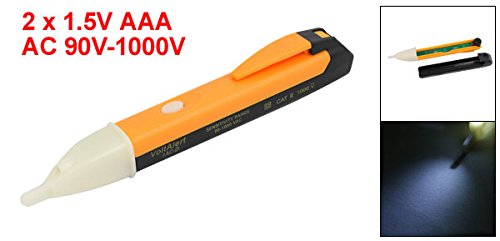 uxcell AC電圧検出器 1.5V単4形電池 メタル製 イエロー AC 90V-1000V