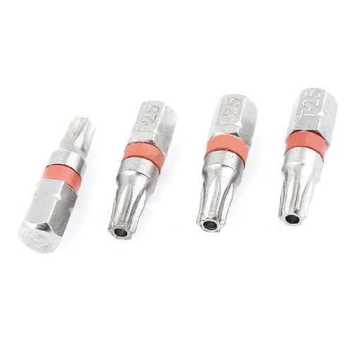 uxcell ドライバービット トルクスドライバービット トルクス 4個 4mm 磁気 T25 メタル レッド シルバートーン