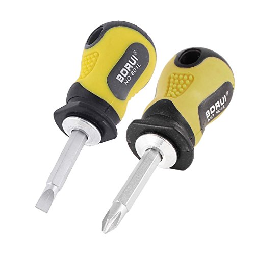 uxcell ハンディツール ブラック イエロー 滑り止めグリップ 双方向 マイナスプラスドライバー 2個入り