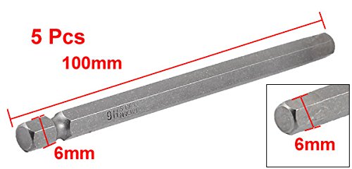 uxcell ドライバービット 磁気六角ヘッド グレー 金属素材 100mm x 6mm 5枚入り