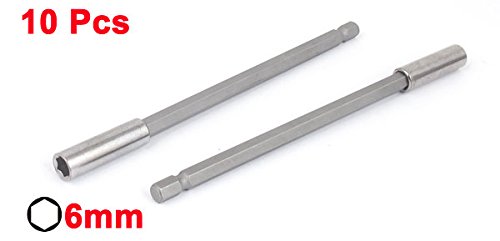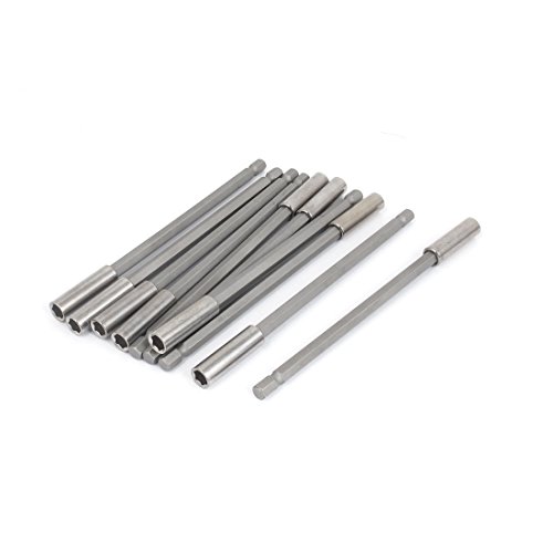 uxcell 磁気ナットセッター 六角ドライバー メタル製 シルバートーン 150mm長さ 6.3mm六角シャンク 10個入り