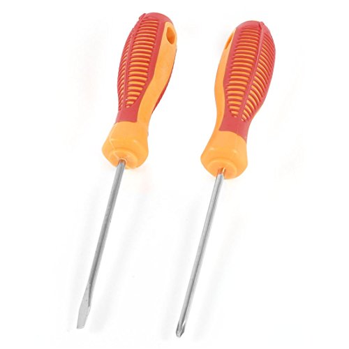 uxcell 2 in 1スクリュードライバー ハンドル スロット スクリュードライバー ハンド リペア ツール レッド オレンジ