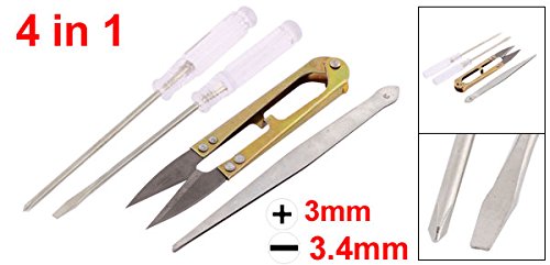 パッケージ内容:プラスドライバー1個入り、マイナスドライバー1個入り、シザー1個入り、ピンセット1個入り
