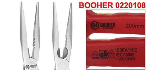 uxcell 絶縁ロングノーズプライヤー 絶縁プライヤー 金属 プラスチック 1000V BOOHER 200x60x30mm