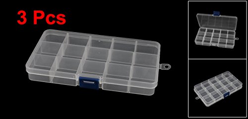 uxcell ストレージボックス オーガナイザーボックス プラスチック 長方形 透明 15スロット 3個入り