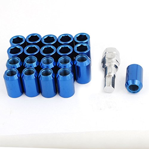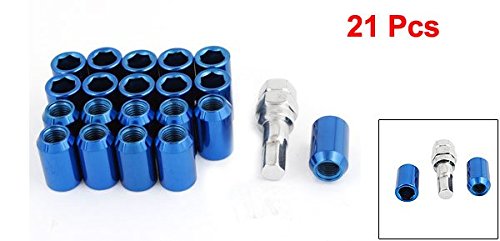 uxcell タイヤチューナーラグナットセット ホイールロック 12mmx1.5 メタル カー ブルー 21個入り