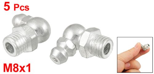 uxcell グリースニップル M8x1 90度角 18 x 16mm 金属 シルバートーン 5個入り