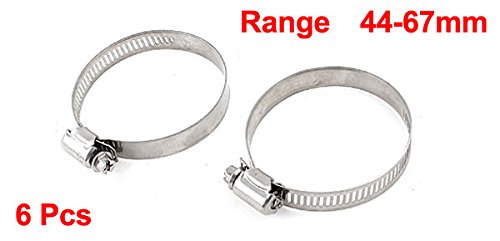 uxcell ホースクランプ 調整 金属 シルバートーン 137g メタリック 44-67mm 6個入り