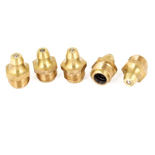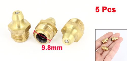 uxcell グリースニップル 5個 オスネジ 9.8mm ダイヤ ストレート 真鍮トーン