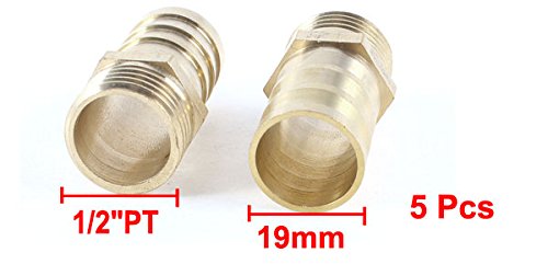uxcell エア用カプラー クイック継手 ストレート 真鍮 1/2"PT オスネジ-19mm 5個入り
