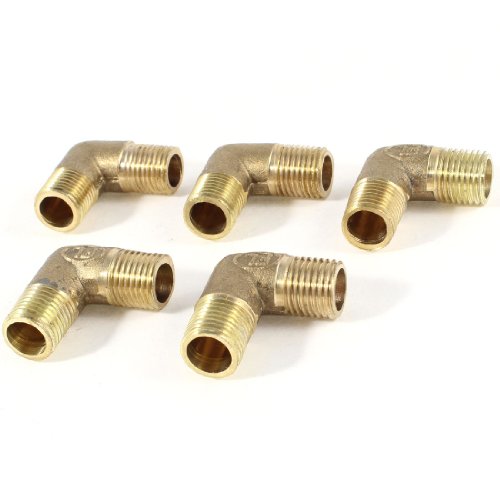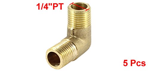 uxcell エルボーパイプ 装着 カプラー 真鍮 90度 1/4"PTオスー オス 5個