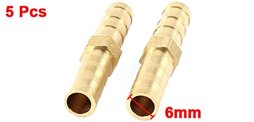 uxcell ホースバーブ クイック継手 カプラ 5個 真鍮 6mm 空気圧 フィッティング
