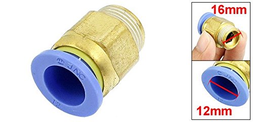 uxcell エア 12mm OD チューブ_16mmオスネジ ワンタッチ継手 クイック継手 真鍮トーン ブルー