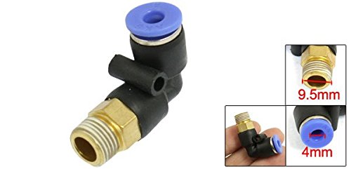 uxcell 空気圧 4mm OD チューブ_9.5mmオスネジ クイック継手 エルボーコネクタ 真鍮トーン ブルー