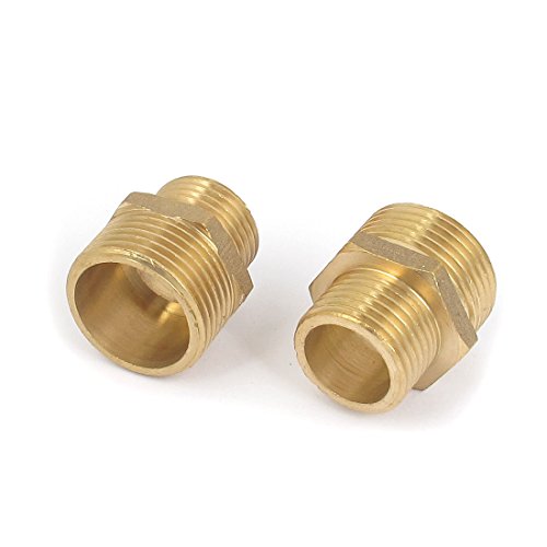 uxcell 六角ニップル 真鍮 ゴールドトーン 70g コネクタ 空気管 ブラスカプラ 2個入り