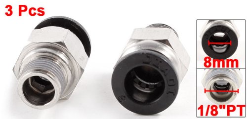uxcell クイック継手 ストレート ユニオン 空気圧 オスねじ 8mm x 1/8"PT 3個セット