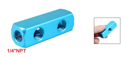 uxcell エアインラインマニホールドブロック ブルー アルミニウム 66x20x20mm 圧縮空気システム