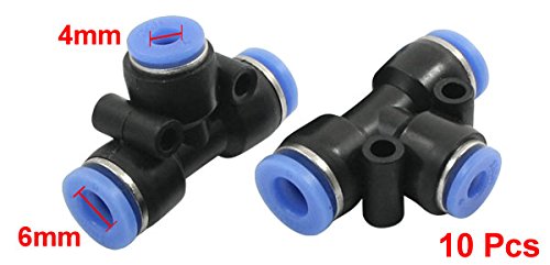 uxcell クイック継手 空気圧クイック継手 ワンタッチ カプラ 4mm-6mm 空気圧 T型 10個