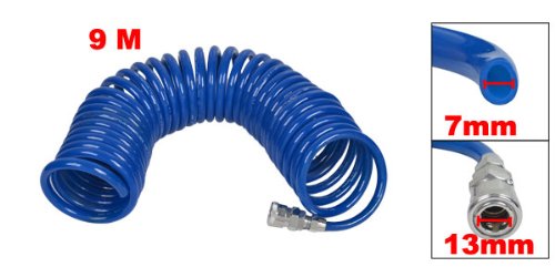 uxcell 空気圧 ラインスパイラルホース コンプレッサー用 エアツール ブルー 9m 10mmx6.5mm PU コイル状