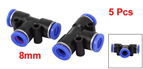 uxcell クイック継手 8mm直径 空気圧 3ウェイ コネクタ チューブ 気流 リリース 5個入り