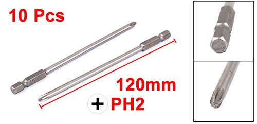 uxcell ねじ回しビット 120mm長 6mmシャンク PH2 4.5mmの先端 マグネット グレー 10個入り