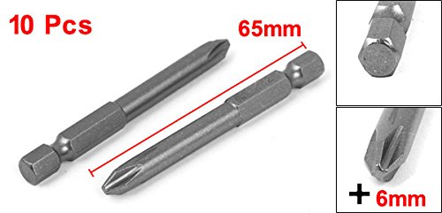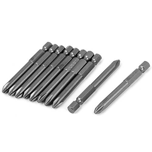 uxcell フィリップスドライバービット 磁気 65mm PH2 6mm六角シャンク幅 10本入り