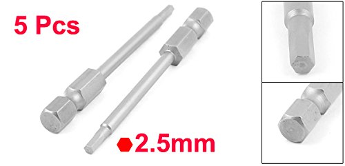 uxcell 六角ドライバービット 金属 シルバートーングレー 65mm長 2.5mm チップ径 5本入り