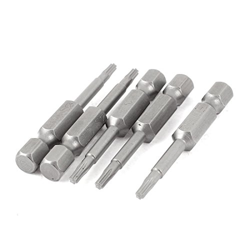 uxcell トルクスドライバービット 金属 グレー 50mm長 磁気ビット電動工具 5本入り