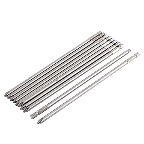 uxcell フィリップスドライバー ビット 10個入り PH2 磁気 200mm長 シルバーグレー