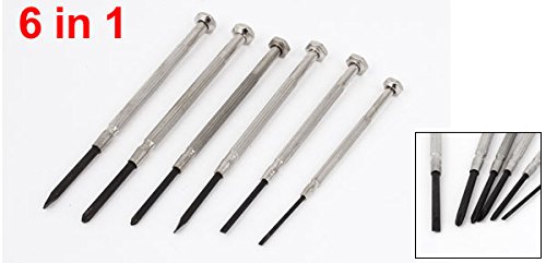 このスクリュードライバーセットは4つスロットヘッドと2つフィリップスヘッドを持っています。