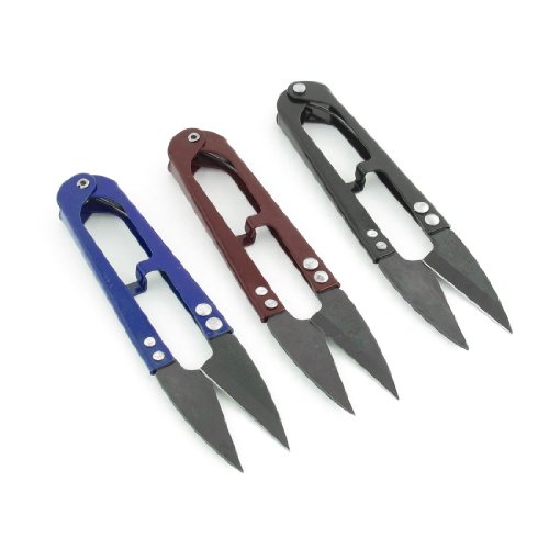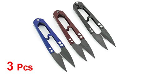 uxcell バネ鋏 メタル製鋏 カッターツール スレッド 三色 ブルー レッド 3個入