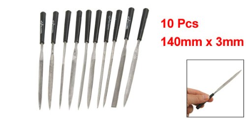 uxcell ダイヤモンド針ファイル セット 正方形 三角形 交差かわし ハンドル ブラック 180X5mm 10本入り