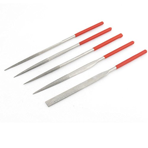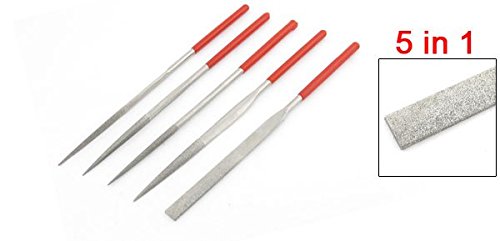 uxcell ヤスリ レッド シルバートーン ダイヤモンド ロックストーン 5枚入り