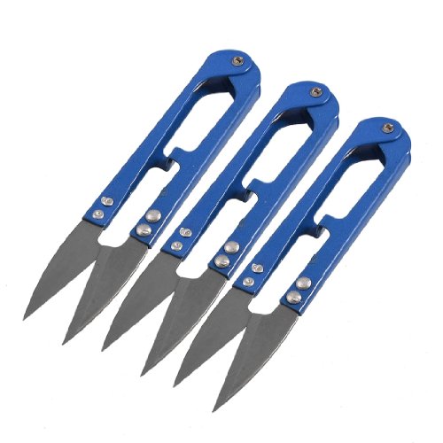uxcell はさみ 釣りライン コードカッター ミシン テイラー U字型 ブルーグリップ 3個入り