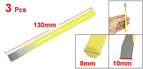 uxcell フラットコールドチゼル クロムバナジウム鋼製イエローシルバートン 10mm x 8mm x 130mm 3個入り