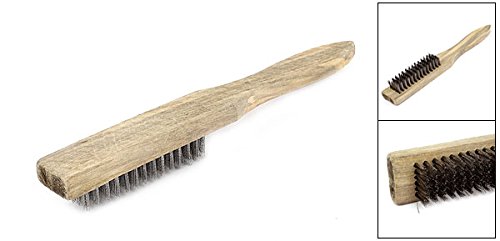 uxcell ステンレス鋼ワイヤブラシ 木製ウッドカラー ハンドツール クリーナーブラシ 23cm 長さ