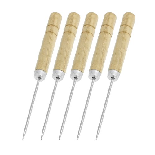 uxcell ソーイング千枚通し テーパ状の針 ウッドハンドル メタル針 12.4 x 1.2cm 縫い合わせる 5個入り