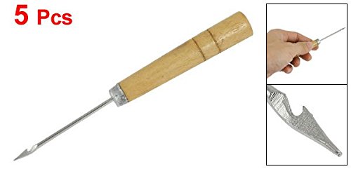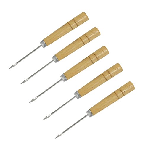 uxcell 縫製錐 木製 ハンドル カーブ メタル ニードル ハンド ミシン 千枚通し 5個