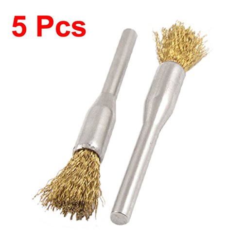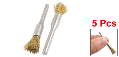 uxcell 軸付き砥石 研磨 ルーター 鉛筆ブラシ ワイヤーブラシ ロータリーツール ブラスワイヤ メタル製 ブロンズトーン 5x3mm 5個