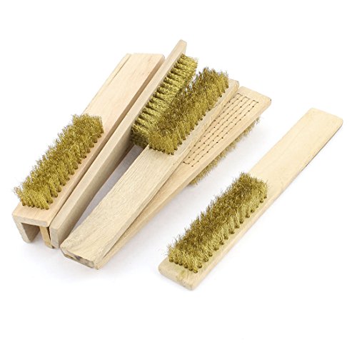 uxcell ワイヤブラシ 真鍮ワイヤークリーニングブラシ 20cm長ウッドハンドル ハンドツール8個
