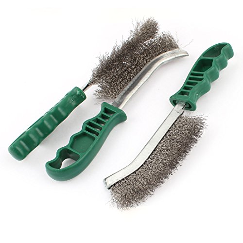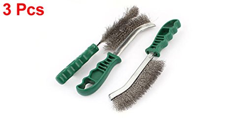 uxcell スチールワイヤブラシ ステンレス鋼線ブラシ 25cm長さ グリーンプラスチック 3個 ハンドル