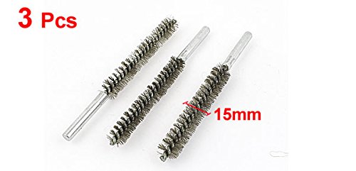uxcell スチールワイヤーチューブブラシ ステンレス鋼、金属 シルバートーン 15mmの直径 3個入