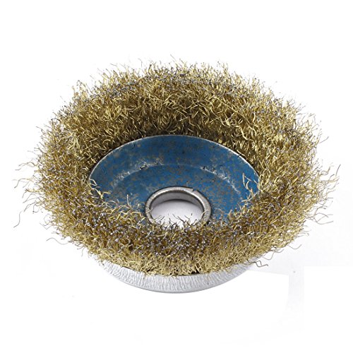 uxcell カップホイールブラシ スチール メタル真鍮トーン シルバートーン 1個入り