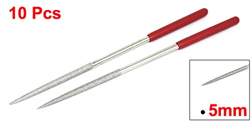 uxcell ?ラウンドヤスリ ダイヤモンドニードルファイル 宝石細工 宝石 木工 赤いハンドル 5mmx180mm 10本入り