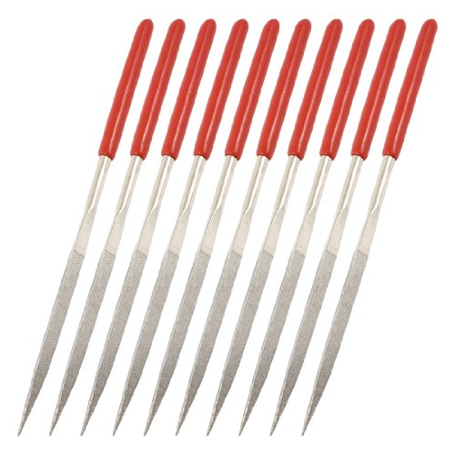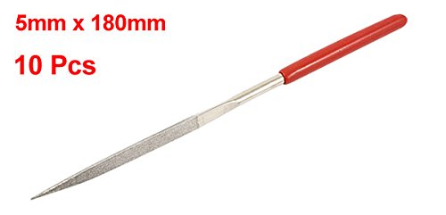 uxcell ニードルヤスリ トライアングルファイル レッド シルバートーン 5mm x 180mm 10本入り