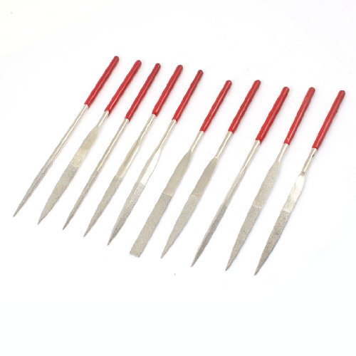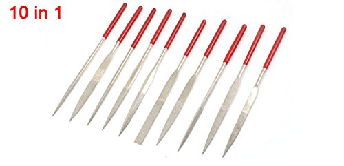 uxcell ヤスリ ニードルファイルセット レッドラバーコートハンドル スクエア ラウンド トライアングル クロッシング 10 in 1